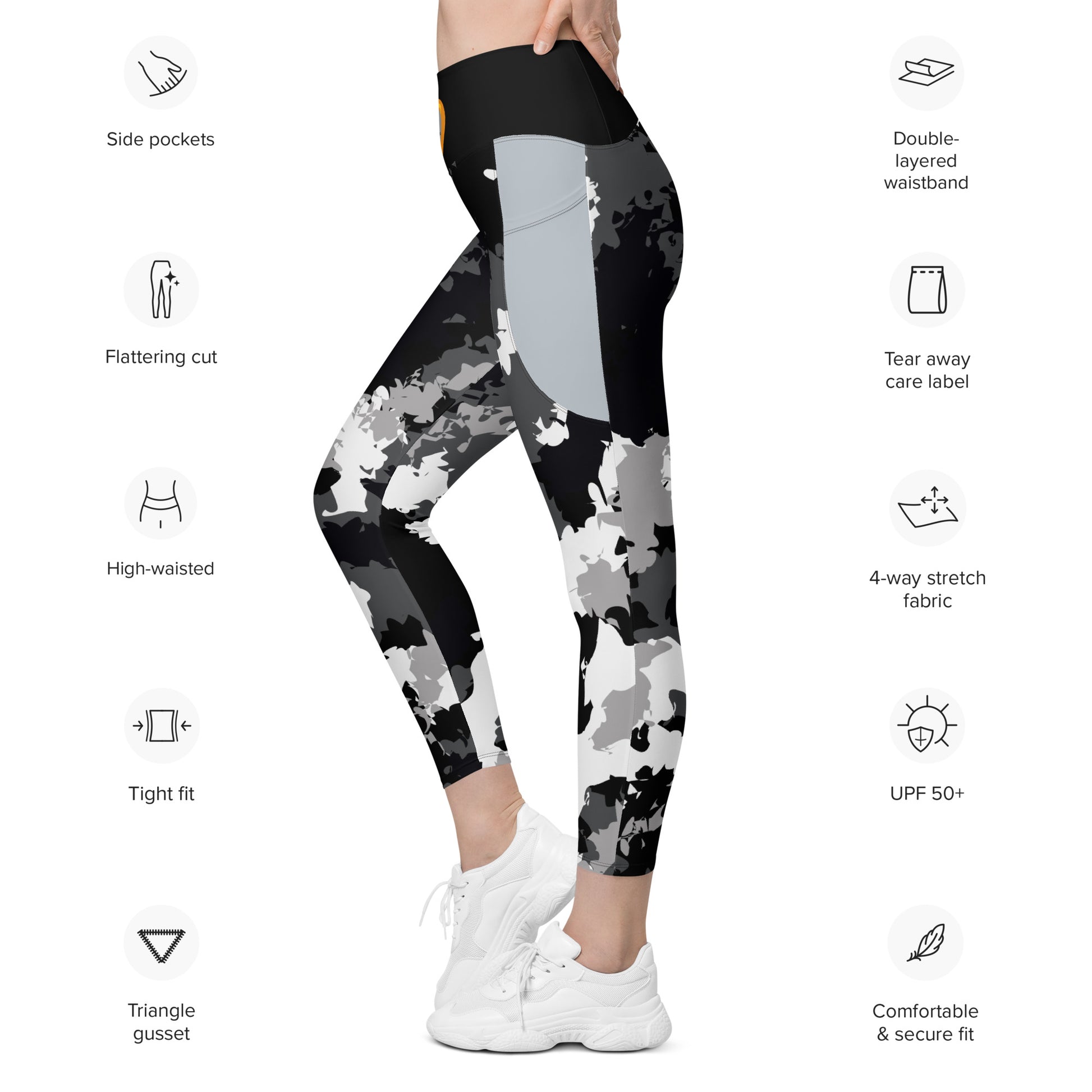 Meet your new favorite pair of pocket leggings. Featuring a classic, high-waisted cut, exceptional comfort, and two practical side pockets, these semi-compression leggings will support you during workouts and casual strolls around the city. Get yours now! These semi-compression leggings, featuring